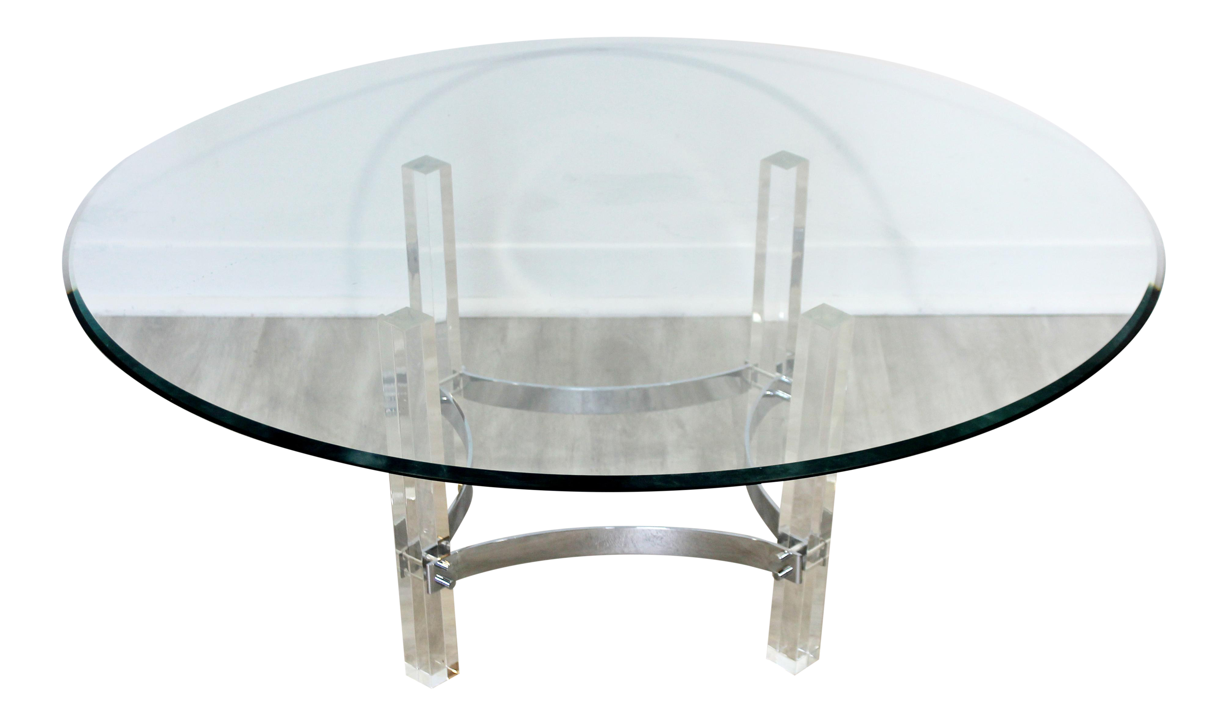 Mid Century Modern Round Glass Lucite Chrome Coffee Table 1970s Hollis Jones Era Chairish
